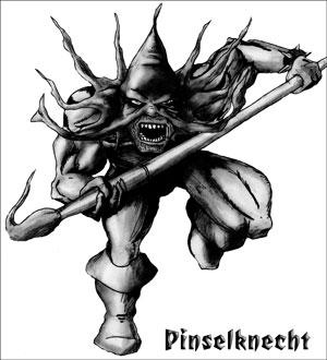 Nicht das der Knecht mit seinem alten Bild unzufrieden war, aber es war Zeit für einen kleinen Tapetenwechsel. Und das am besten mit etwas Farbe. Deswegen gab der Knecht einen neuen Pinselknecht in Auftrag. Und wie schon das erste Bild vom Pinselknecht wurde auch das neue von Dirk N. Karger (alias Nico) entworfen und verwirklicht.