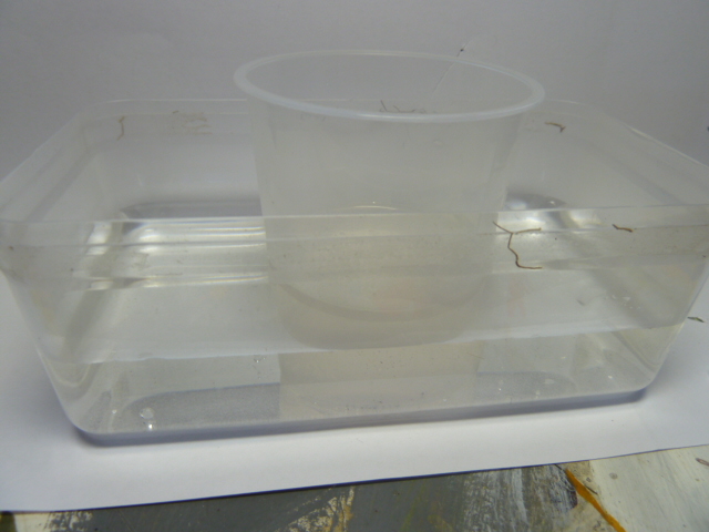 Man nimmt sich ein Glas oder Tupperdose, wichtig nur das das Base, Diroama, was auch immer hinein passt, und das das Behältnis stabil genug ist.