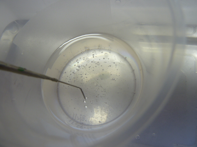 Man kann auch eine Pipette oder ähnliches verwenden, um das Wasser Tropfen für tropfen hinein tropfen lassen.
