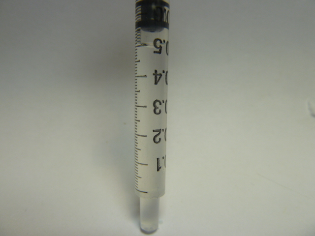 Zwei Spritzen mit Skalierung in 0,01ml Schritten zu Dosierung des Härters (1/100)