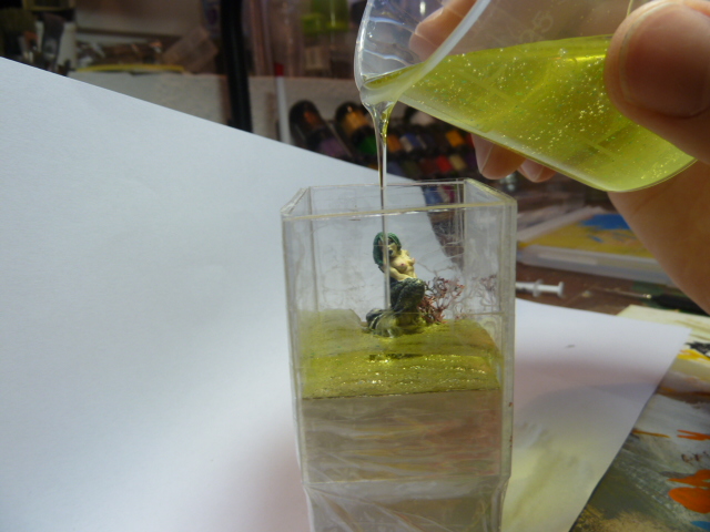 Nun kann man die vermischte und Gefärbte Masse in das Diorama oder Base seiner Wahl kippen. Hier gilt auch wieder die Devise: Laaaaaaaaaaaaangsam!